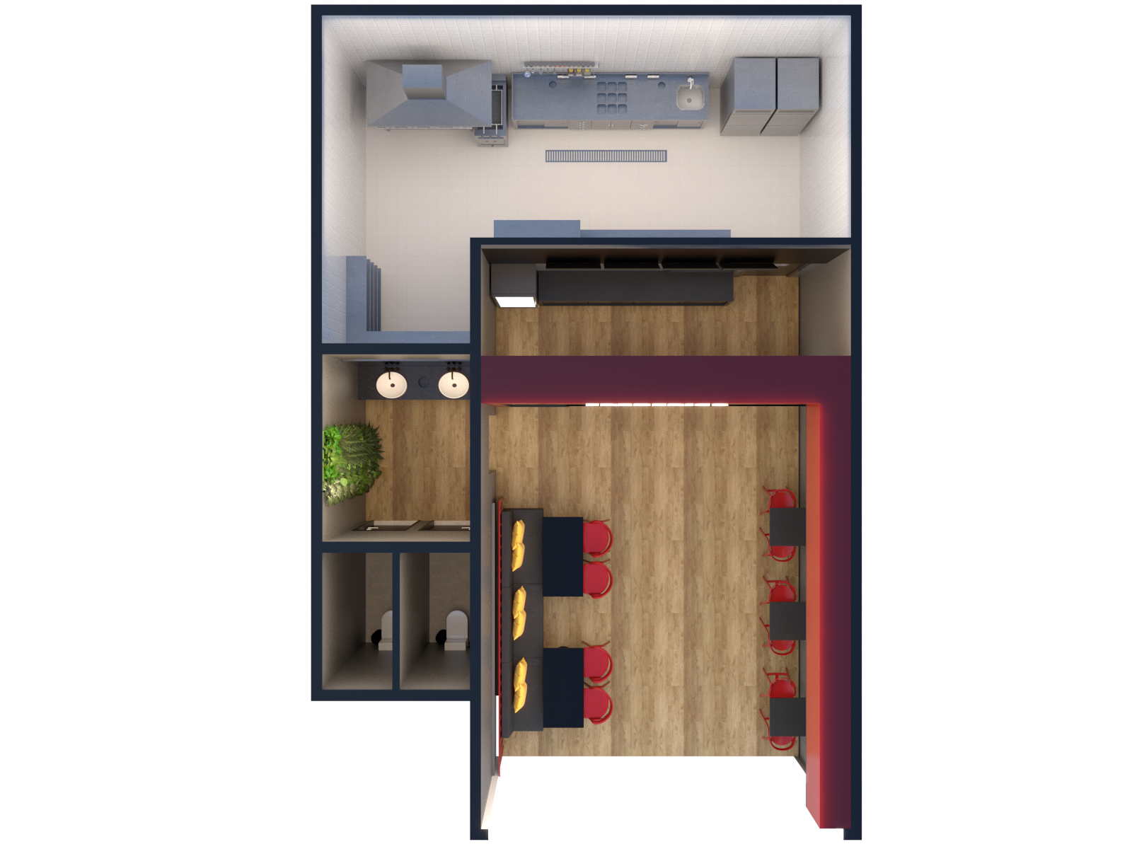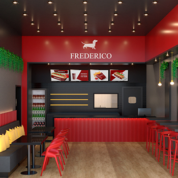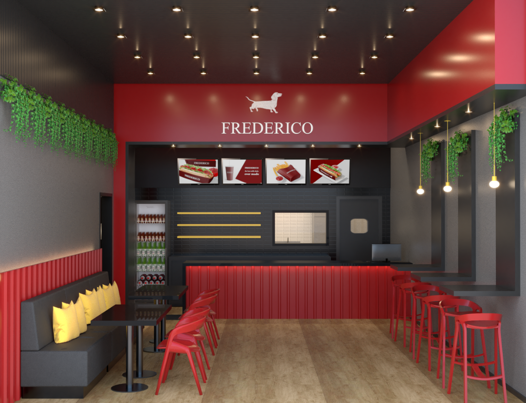 Este projeto foi desenvolvido para uma rede de franquias de hot dogs em Itapema/SC, com foco em um ambiente acolhedor e moderno. A identidade visual destaca o vermelho vibrante, alinhado à marca, complementado por detalhes em preto e madeira clara para criar equilíbrio. Elementos como iluminação estratégica, vegetação suspensa e móveis confortáveis oferecem uma experiência convidativa para os clientes, ideal para refeições rápidas e momentos descontraídos.